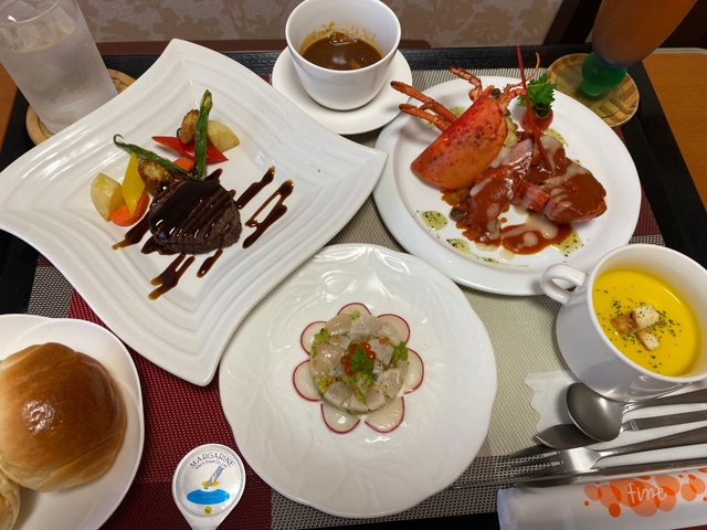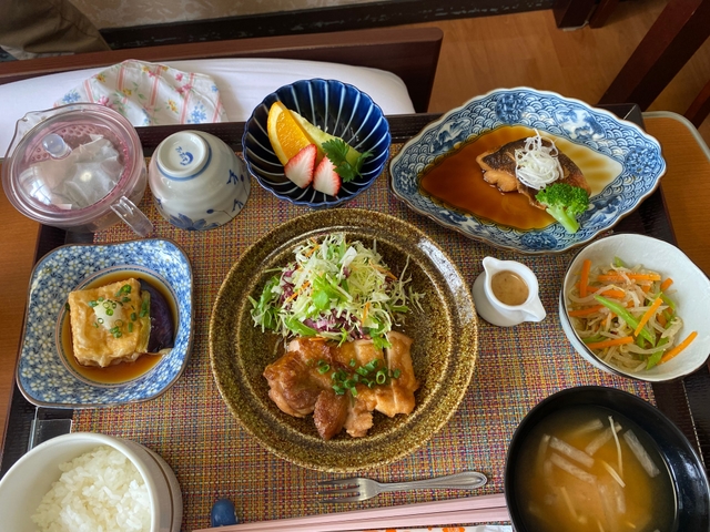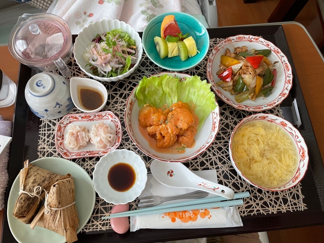 毎食豪華な食事でした。お魚料理とお肉料理両方とも食べれて副菜もたくさんあり、食事の時間がたとても楽しみでした! 初めてのお産でわからないことだらけだったけど先生方や助産師さん方とてもいい方ばかりですごく心強かったです。