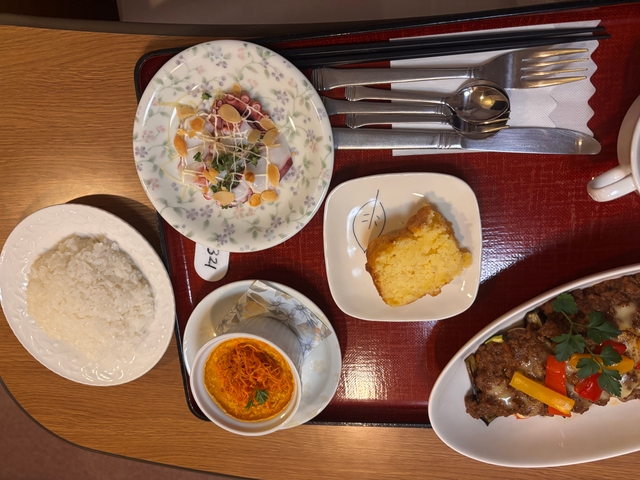 入院中のお食事とおやつは、低農薬のお米や産地(国産)など安心できる食材にこだわったシェフ自慢の手づくりメニューを提供いたします。