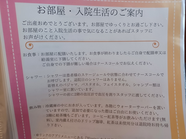こちらで前回の出産もお世話になったのですが診察から入院に至るまでとてもいい産院さんですので今回も利用させて頂きました。 無痛分娩を利用し、心落ち着いて出産ができたのでよかったです。 改めて先生、助産師さんという存在に感謝しかありません。ありがとうございます。 ご飯も今回もとっても美味しくてこちらでお世話になることができて本当によかったです。 朝昼晩3回の豪華なご飯はもちろん、3時のおやつと夜のおやつがあるのはとっても贅沢な時間でした♪ 今回もありがとうございました。
