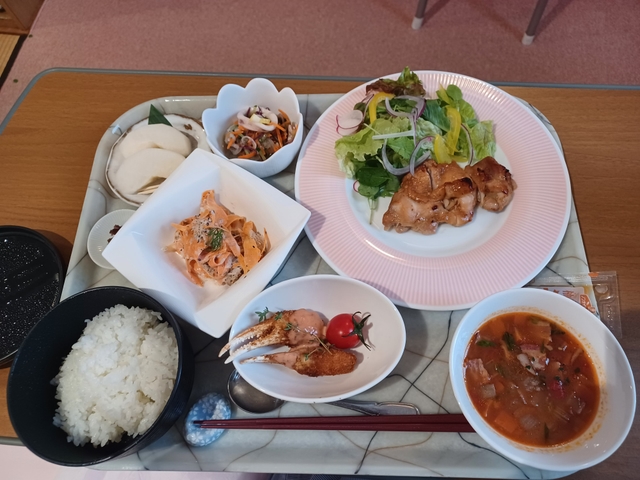 ご出産での入院がここちよい思い出となり、お産疲れが早く癒されますよう、お食事にはこだわりをもってご提供させていただいています。日々豪華なお食事ではございませんが、食材を吟味し、手間を惜しまず、皆さまがお喜びいただけるよう、シェフ、管理栄養士、厨房スタッフ一同、こころを込めてお作りしています。これからいよいよ始まる育児の活力にもつながれば嬉しく思います。楽しみながらどうぞお召し上がりください。
