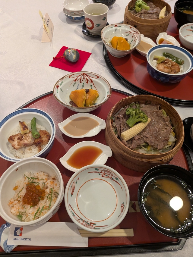 なんといっても美味しいご飯が魅力です! たくさん食べて体重は全然減りませんが、頑張った自分にご褒美だと思ってます!笑 家族と一緒に食べれるのも嬉しいです。 スタッフの皆様も優しく、入院生活が終わるのが惜しくなる産院です! お土産もたくさんもらえます!