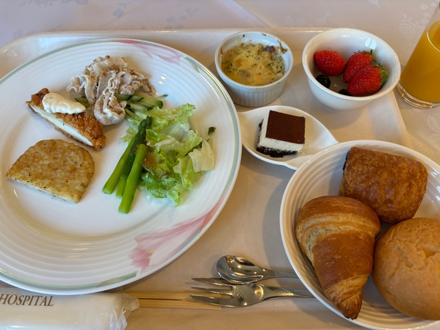 2人目の出産でした。 予定日より早く陣痛が来てしまい、病院に連絡したところ優しくすぐに病院に来るように案内してもらいました。 子供も一緒でしたが早朝のため、一緒に院内に入れず祖母が子供を預かるまで夫と駐車場で待機してもらいました。 入院中は食事がとにかく美味しく、モーニングビュッフェはスープ、味噌汁、ジュースやパンも全て日替わりです。 カフェインレスの紅茶、コーヒーもありました。 メロン、パイナップル、オレンジ、イチゴなど果物も冷凍ではなくとても美味しかったです! 朝食は自由席なので、一人で食べている方も多かったです。 昼食、夕食はほかの患者さんと一緒のテーブルですが楽しく過ごすことができました。 部屋も空気清浄機があり、加湿がしっかりできました。面会も夜9時までと長いので、子供が幼稚園後に会いに来てくれました。 入院中のサービスで昼食、夕食、エステ、シャンプーブローの中から2つ選べますがどれもアプリで事前申し込みが必要です。特に昼食は前日の13時、夕食も13時までに申し込みが必要なので産後翌日に一緒に食事したい方は要注意です。 昼食とエステを選びましたが、エステは申し込んだあと担当の方が前日部屋に注意事項と開始時刻が書いてある用紙を部屋に持ってきてくれます。(開始時刻は選べませんでした) シャンプーブローは早いと8:10開始で朝食が7:30〜8:30のため、朝食時間が短くなってしまうので注意です。 医師も看護師さん、助産師さんも皆優しかったです。 入院中は胸が張ってしまい、搾乳機やアイスノンを借りました。 授乳室(授乳指導の部屋)で助産師さんからニップルを借りて、サイズを見てもらい、赤ちゃんに試してから、院内の自販機で購入しました! (1650円で販売していました) シャワールームも8部屋ほどあり、いつも空いていました。朝6時から夜8:50 まで利用できます。 (途中清掃時間あり)シャンプー、トリートメント、ボディーソープがあります。バスタオルとフェイスタオルもシャワールームにたくさん置いてあるので自宅から持参せず便利です。無料のマッサージチェアーも2つあります。 退院日は昼食のプレゼントディッシュ後の13:30には部屋を出ないといけないのでやや慌ただしいです。 妊婦健診は後半予約できない時期になると、医師指名したときに1時間以上待つこともありました。 (人気の先生だったからかもしれません) とにかく入院中快適に過ごすことができたので、本当におすすめです。
