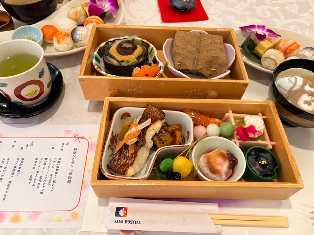 無痛分娩が選択出来る病院で探し、恵愛病院に決めました。入院中に必要なものはほぼ頂けるので、荷物の準備は少なくて済みます。プレゼントも多いので退院の時の荷物はいっぱいです! 入院中のご飯は毎日豪華です。